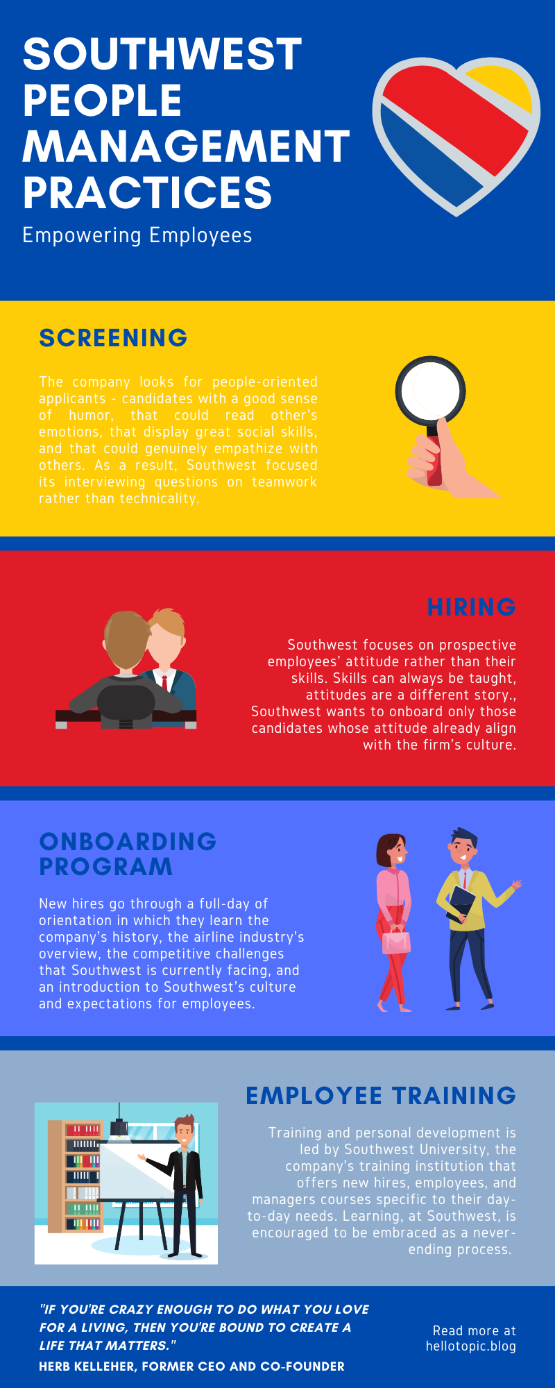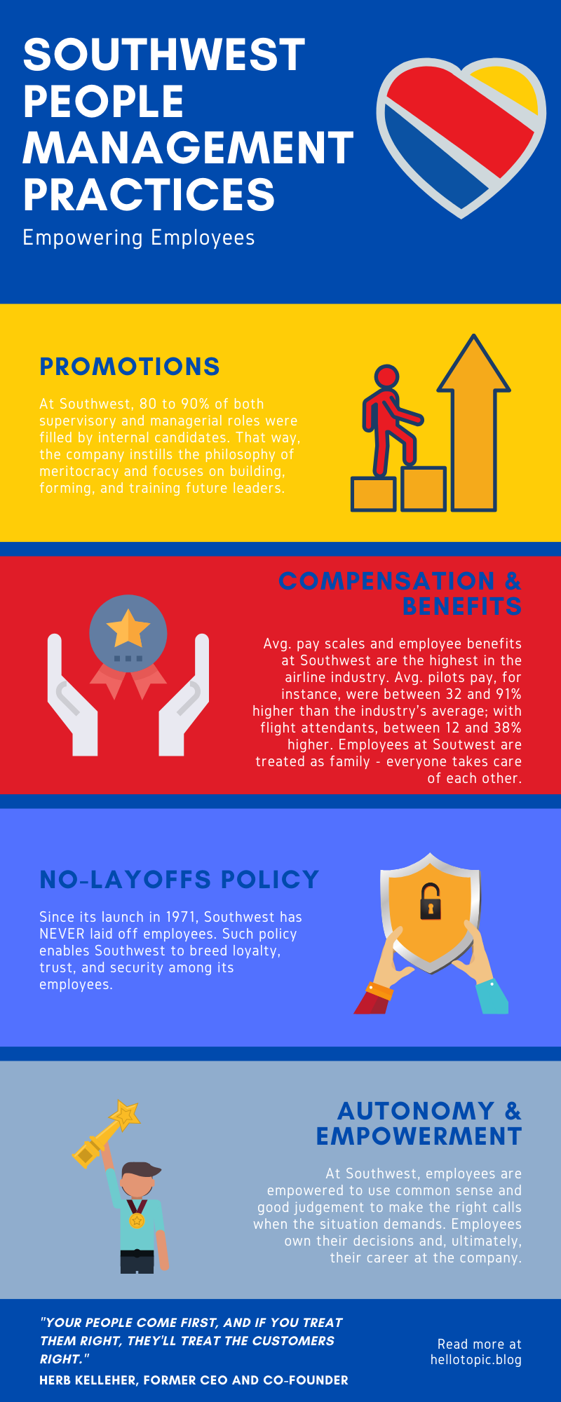 The following infographics illustrates the different strategies Southwest utilizes that embody the heart and soul of its people management practices: